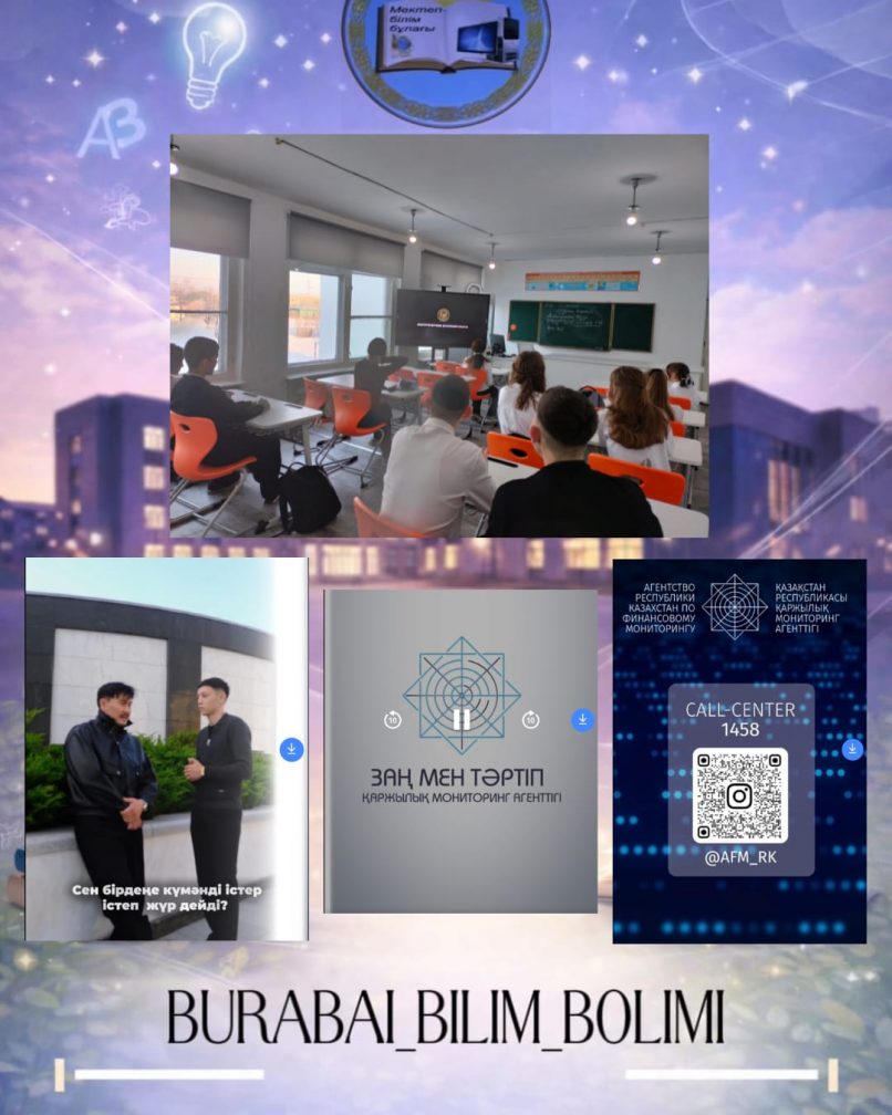 10.02.2026 ж 8"А" сынып оқушыларына «Крипта» атты бейнеролик көрсетілді. Талқылау барысында криптовалюта деген не, оның мүмкіндіктері мен тәуекелдері, сондай-ақ цифрлық әлемде қаржылық сауатты әрі сақ болудың маңыздылығы туралы айтылды.
