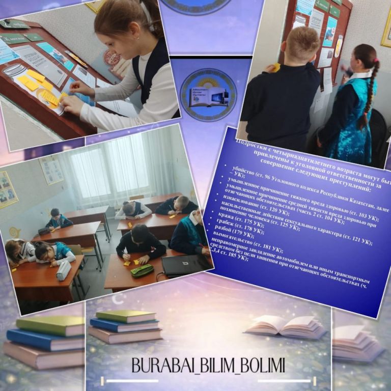«Адал азамат» біртұтас тәрбие бағдарламасы аясындағы «Заң мен тәртіп» айлығы шеңберінде 5 сынып оқушыларымен «Жасөспірімнің әкімшілік және қылмыстық жауапкершілігі» тақырыбында сынып сағаты өткізілді.