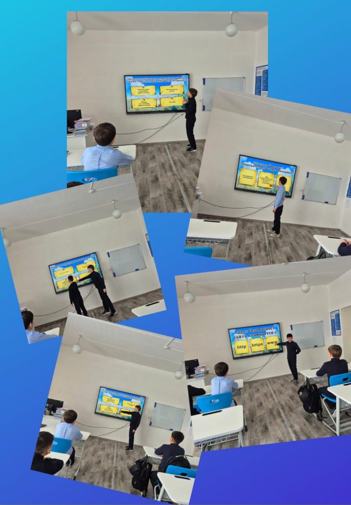 6-сынып оқушыларымен «Қауіпсіз интернет» тақырыбында викториналық ойын өткізілді. Оқушылар интернеттегі жеке деректерді қорғау, қауіпсіздік ережелерін сақтау жөнінде құнды ақпарат алды. Информатика мұғалімі: Ибраева С.А.