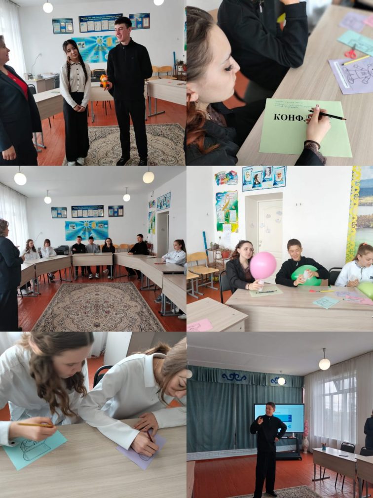 «Салауатты ұрпақ — қуатты ұлт» онкүндігі аясында 8-сынып оқушыларымен «Әдеп және жанжалдарды шешу» тақырыбында іс-шара өткізілді. Іс-шараның мақсаты — мәдени қарым-қатынас дағдыларын қалыптастыру, жанжалдық жағдайларды сындарлы түрде шешу қабілетін дамыту және бір-біріне құрметпен қарауға тәрбиелеу. Сабақ барысында оқушылар түрлі тапсырмалар орындап, өмірлік жағдаяттарды талдап, күрделі жағдайларда дұрыс шешім табуды үйренді. Әсіресе, әңгімелесушіні тыңдай білуге, өз ойын сыпайы жеткізуге және ортақ келісімге келуге ерекше көңіл бөлінді. Қарым-қатынас мәдениетін қалыптастыру және жанжалдарды бейбіт жолмен шешу дағдылары жасөспірімдердің тұлғалық дамуына маңызды рөл атқарады. Алған білімдері оқушыларға ұжымда және күнделікті өмірде үйлесімді қарым-қатынас орнатуға көмектеседі. Өткізген: әлеуметтік педагог Нарижняя Т.Н.