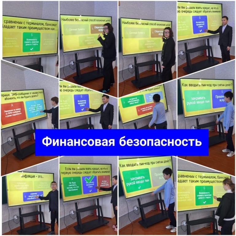 «Заң және тәртіп» жоспары аясында 6-сыныпта «Қаржы сақшысы» тақырыбында қаржылық қауіпсіздік бойынша компьютерлік ойын өткізілді. Мақсаты: Қаржылық сауаттылық туралы негізгі білімді қалыптастыру, негізгі терминдер мен ұғымдармен танысу. Бюджетті жоспарлау, кірістер мен шығыстарды түсіну және жинақтаудың маңыздылығын түсіну сияқты жеке қаржыны басқарудың практикалық дағдыларын дамыту.Сынып жетекшісі: Талипова Д.Г.